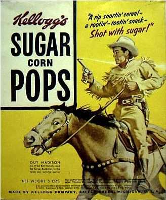 They went back to Sugar Corn Pops in 1978 and then Corn Pops in 1984 – supposedly when several makers of sugary cereal decided that if they took “sugar” out of the names, America’s mothers would be too stupid to realize that the product was the same. But the kids knew that even after the cowboys went away, the cereal was still “shot full of sugar”. We just had to keep it a secret. So sssshhhhhhh. So I must confess that this is one cereal that has, over a long span of time, gone full circle in its name. So I guess I should just acknowledge that we are back to the original (though evidently unsuccessful) name of 1951 and just run with that. Do the multiple aliases simply reaffirm that Corn Pops was a bad cereal that ran with a lot of other bad cereals? I will leave that to you to decide.