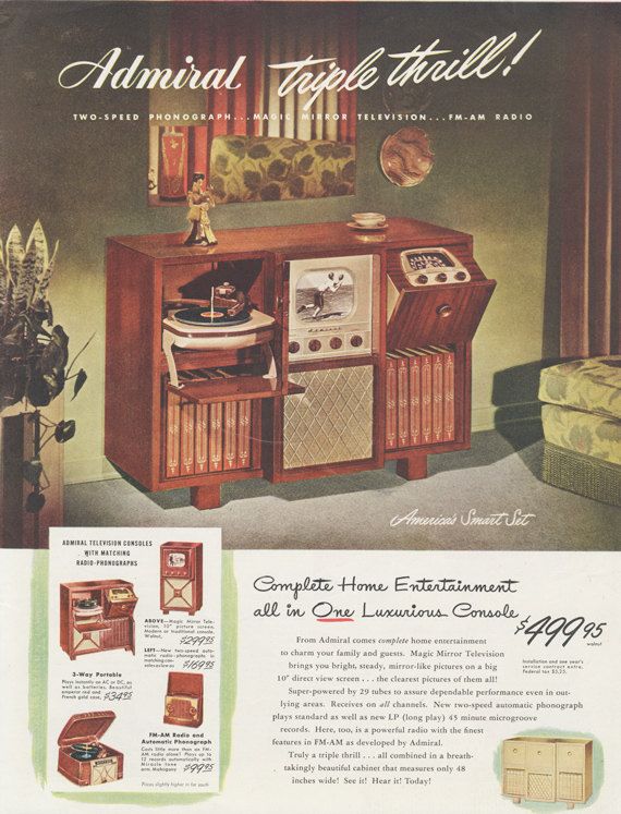 Beyond the technical achievements, Columbia made one sound business move that neither Edison nor RCA Victor had made with their earlier long-play discs – Columbia freely licensed the technology to other record companies and equipment manufacturers so that the format took hold in a broad way, and very quickly. This time, the high-end Admiral console shown in the ad was less than 1/3 the cost of a new 1948 Ford – and that included a television set!