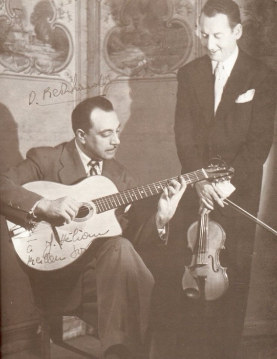 And howsabout a guitar comparison: You can start with the great European combination of Django Reinhardt & Stephane Grappelli (1947), who also called themselves The Hot Club of France. Those guys proved that a toe tapper could be great jazz at the same time. Then compare to a fun modern counterpart from the 2000’s by Andy Reiss, Ranger Doug and bassist Bobby Durham. These guys are new to me, but any friend of Blue Lou is a friend of mine.
