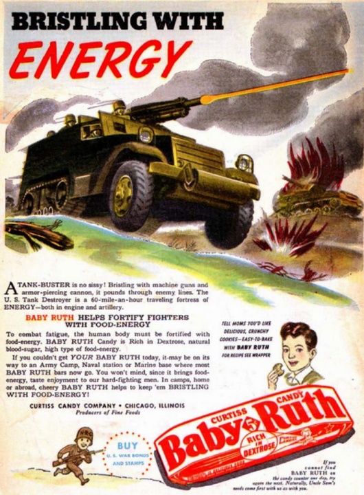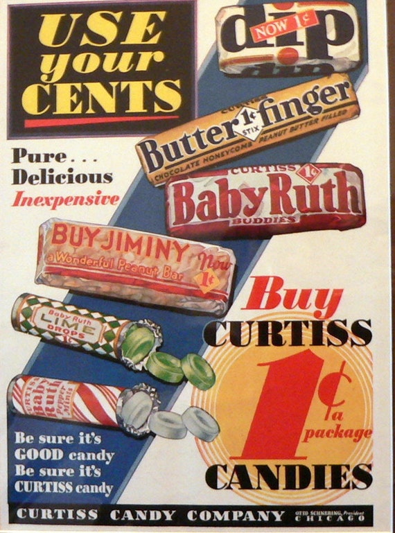 The product got some heavy promotion at its start, including dropping a load of Baby Ruth bars from an airplane. Mr. Schnering thought things through and had the foresight to attach a little parachute to each bar. Something that the fictional Mr. Carlson surely wished he had thought of for his Thanksgiving turkey promotion for the famous WKRP in Cincinnati television episode. And there is an almost endless supply of vintage ads online, proving that Curtiss spared no expense in promoting the product.