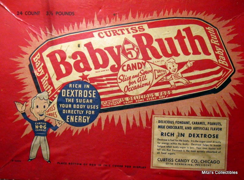 There were a lot of fascinating tidbits in here about Baby Ruth bars JP. As I was not allowed to indulge in candy, except on holidays, when I was growing up, I had to find out about Baby Ruth bars in my teens. I remember getting them confused with Snickers, or even Payday (but the latter has mostly nuts and caramel). The third photo down, the ad “Sweetest Story Every Sold!” had me salivating as I read the description of the ingredients!