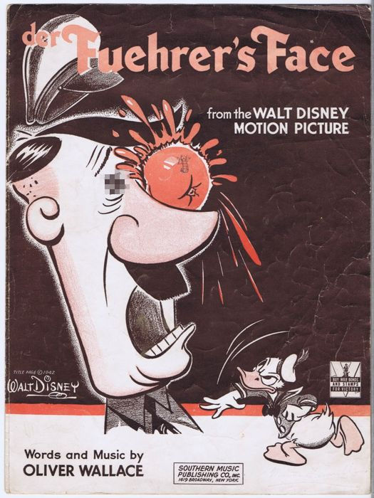 After a handful of records, one of them hit pay dirt. In 1942, the Walt Disney Studios made a Donald Duck cartoon that made fun of Hitler and his Nazi companions. Called “Der Fuehrer’s Face”, the film employed a German oom-pah-pah style song as the theme. (The Disney version is here).