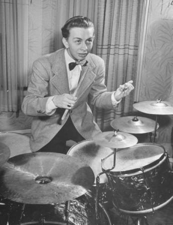 At fifteen he auditioned for the Harry James band (within a year after a young Frank Sinatra was hired away by Tommy Dorsey). Unfortunately, that arrangement was scuttled by the singer’s young age and the need for a touring tutor for high school classes. However, the kid wrote a song that James made into a moderate hit, called “Lament to Love”. At sixteen he was hired as a singer/arranger for a band put together by Chico Marx (of the Marx Brothers) and did some drumming for that organization too.