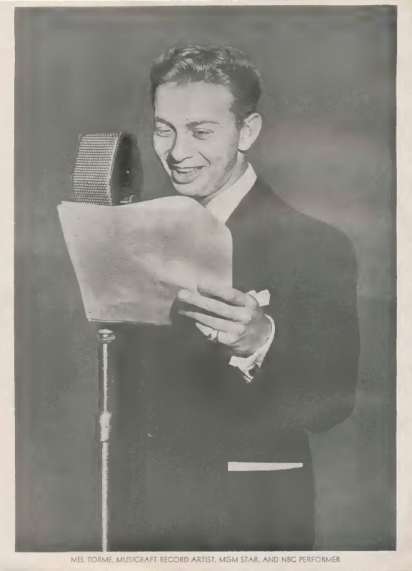 The Mel-Tones (with Mel) hung on for awhile longer and when Torme’ was given an early television show by NBC in 1948, the Mel-Tones were featured in some of the performances. This audio from one of those 1948 episodes shows the group’s (and Mel’s) growth in the three years after those 1945 Soundies. This performance of “When The Red Red Robin Goes Bob Bob Bobbin” (that clocks in at a mere two minutes) is in a style that sounds much later than 1948, with some adventurous key changes and unexpected chords. In fact, it sounds a lot like Torme’s records from the 1950’s, one of his most creative periods.
