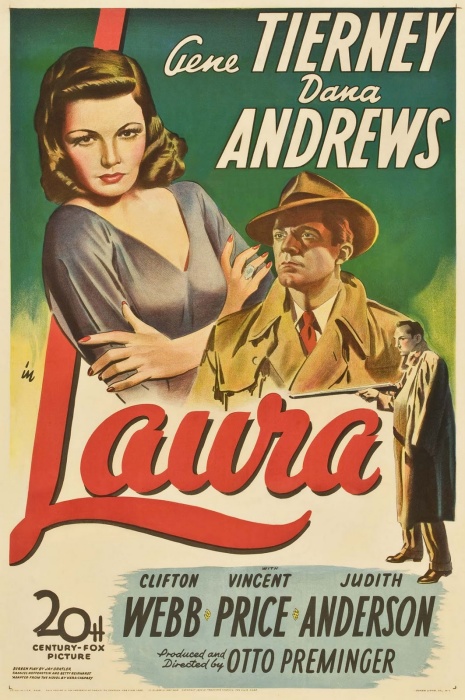 The basic plot is that a woman named Laura Hunt turns up dead in her apartment, and a police detective searches for her murder. As he delves into the crime he begins falling in love with her – or at least the idea of her. But then Laura Hunt turns out to be very much alive, and becomes a suspect in the murder of the dead girl who had been staying at her apartment.