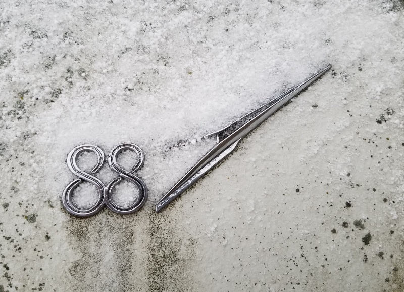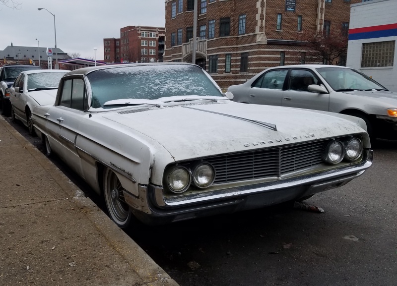 I remember this cold, snowy day when I was heading back to my office from a downtown court appearance. I saw this grizzled Oldsmobile parked on a side street and decided that I needed some photos, mainly because I could not remember the last time I had seen a 62 Oldsmobile anywhere or in any condition.