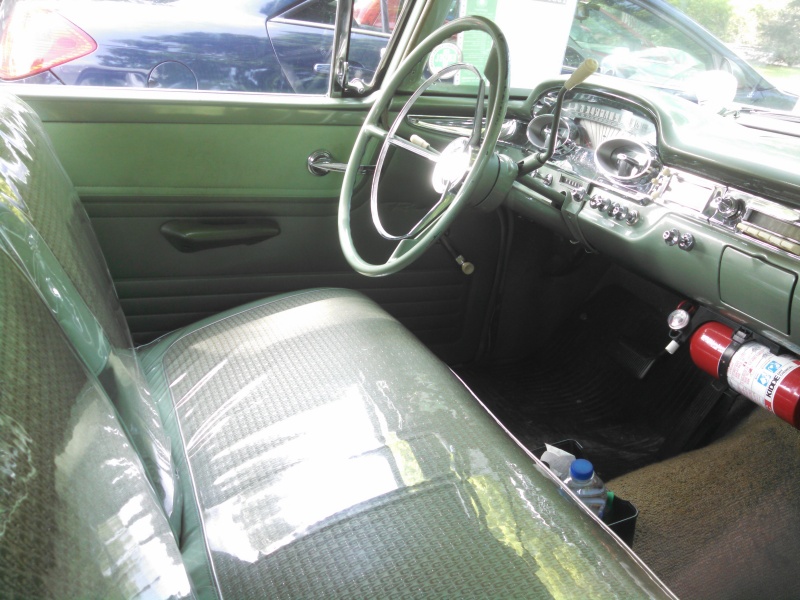 Plastic seat covers! Definitely a forgotten memory from childhood. I only know about the Edsel because my brothers and I went to the Ford factory in Detroit last fall, and the museum there has one (of course they do). Couldn’t help noticing the fire extinguisher just below the dash. Wonder if that was a standard or optional feature 🙂