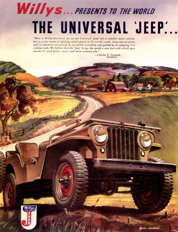 Jeep advertising immediately began calling this model the Universal (Capital U) ‘Jeep’ (with single quotation marks) – most likely because the company could not get a trademark on the Jeep name until 1950. The Universal name continued to be officially used through the later CJ-3, 4 and 5 models by Willys-Overland (1945-53), Kaiser Jeep (1953-70) and American Motors (1970+), although some time in the 1950’s it went from “Universal Jeep” to “Jeep Universal”.