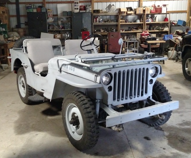 If you are curious, the clues that this is a CJ-2a and not a military MB are the fuel filler in the side panel and a separate tailgate panel, both of which are apparent in this unit and which were not in the original military configuration.