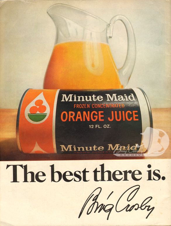 It sticks in my mind that Minute Maid commercials were featured prominently during Bing Crosby’s television specials that starred Bing and his second family.